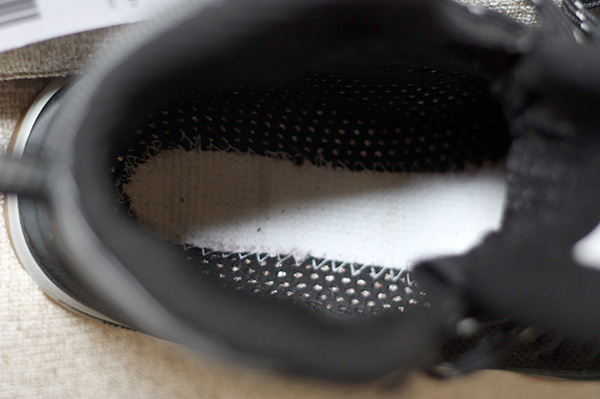 PERPETUUM鞋楦设计所采用的里衬,包括脚踝处的里衬透气孔,均采用具有排汗排湿功能的织物里衬,目测可以清晰看到里衬的织孔,将汗气排除鞋外,保持足部干爽。