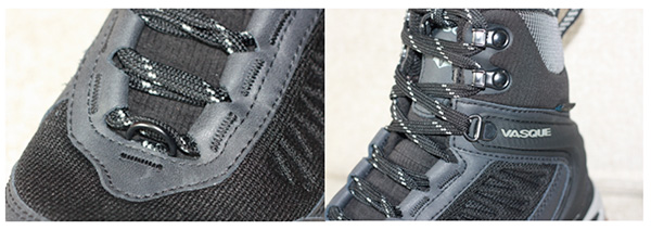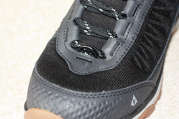 鞋子前端的脚套/雪套的挂环处,增加了固定结缝制工序,有效提升了牢固度。对于细节的处理上,Vasque考虑的全面,做的非常到位。