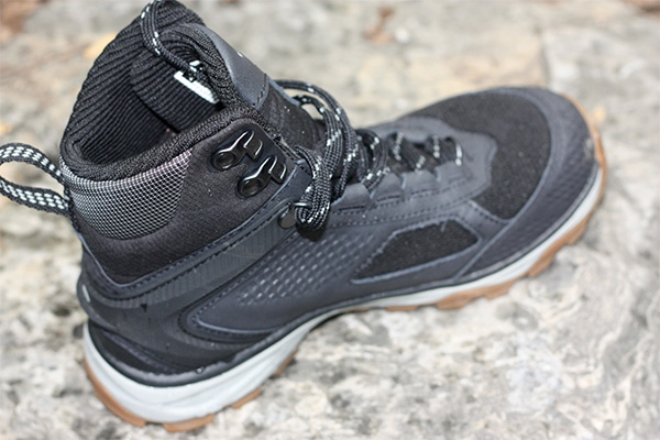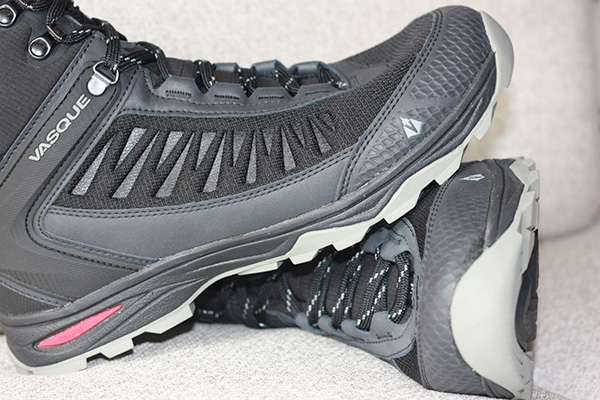 鞋型方面,Vasque结合多年的制鞋经验,对脚部较宽的脚趾部位,采用了宽版的PERPETUUM鞋楦,这让鞋子在初次穿着时候,不用磨合,直接上脚即可。穿上后可以感觉到对于脚部的包裹,大小、松紧度合适,非常舒适,没有夹脚发紧,或者过于宽松咣当、内部打滑的感觉。