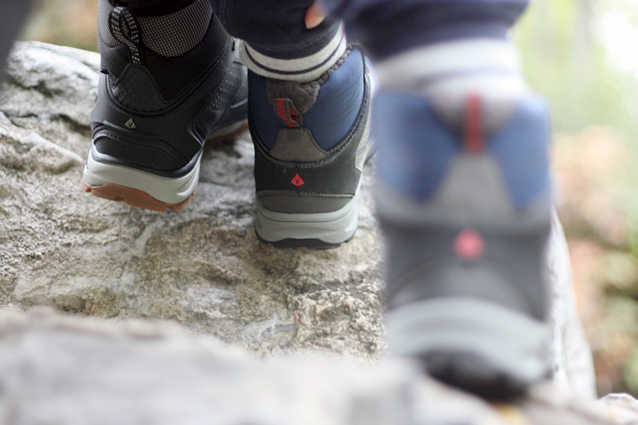 一天近五个小时的徒步行程中,走过登山、过溪水等路况,并且还下了小雨,脚部一直没有产生闷热涨脚的感觉,舒适度很高。雨天气温在5度左右,停留野餐的时候,孩子的脚部没有凉的感觉,保暖性能很棒。