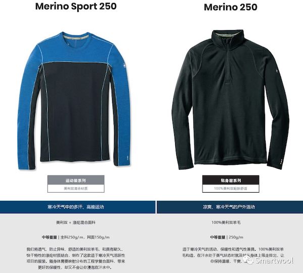从成分上看,Merino Sport 250 是为了寒冷运动设计,非100%羊毛。而 Merino 250 则是100% 美利奴羊毛,日常穿着更保暖、更舒适。