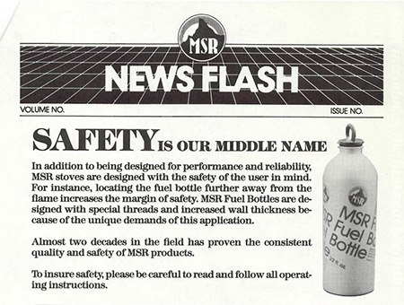 最初,在Mountain Safety Research邮件通讯上出售的是Sigg燃油瓶,其作为全部MSR油炉的燃油瓶。