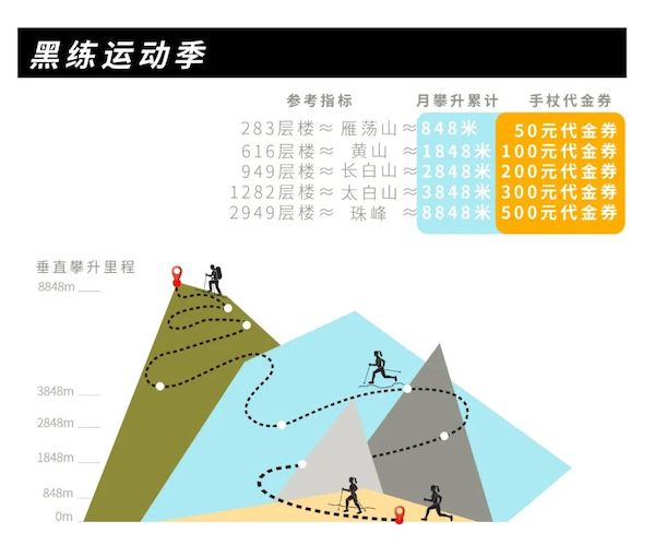 将自己每月的运动APP(徒步、跑步皆可)攀升里程记录截图,发给参与活动的BD旗舰店、喜马拉雅户外专营店客服,即可根据数量兑换不同金额的代金券。