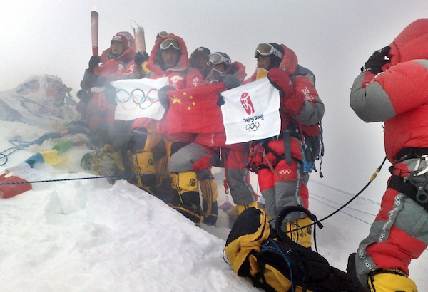 北京奥运会火炬接力珠峰传递活动火炬手顶峰合影