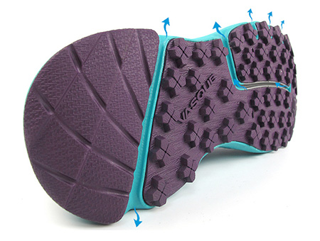Vasque Traction Plus大底,具有出色的防滑性能,适应潮湿环境的排水槽设计,齿状花纹贴紧地面让发力更直接。