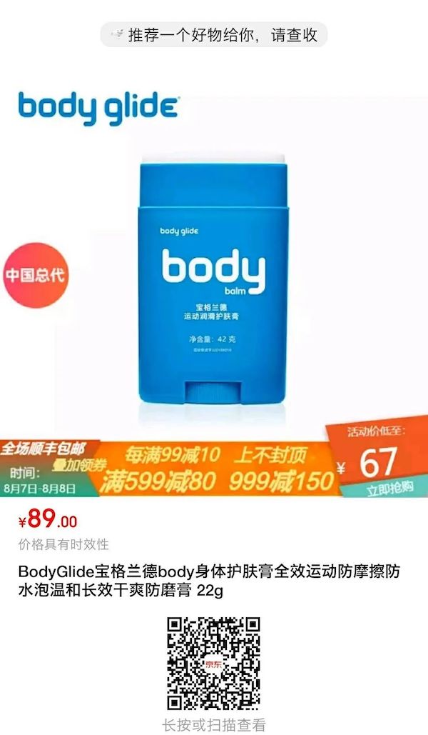 工欲善其事,必先利其器。有经验的跑者,也有了自己的解决方案——赛前使用防磨产品,并且赛中随身携带,方便补涂。