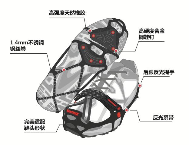 Yaktrax Pro能在冰雪路面为你提供优异的抓地力,让你更加从容和安全。无论是走路、跑步或者在冰雪表面工作,Yaktrax Pro都能让你像在正常路面一样。不要让冬季的寒冷和冰雪影响你的正常工作和娱乐活动。