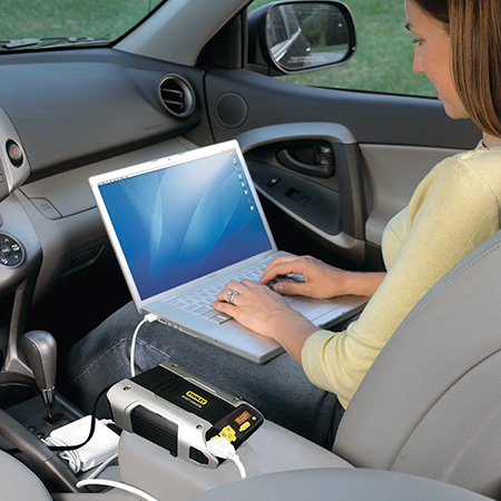 那么,车上的电瓶能带动多大功率的电器呢?假如是一个60AH的12V电瓶,逆变器转换效率为80%,12x60x0.8=576W。注意,这里可带动576W功率电器的逆变器是必须直接连接在电瓶上的。如果逆变器是插在点烟器上取电,一般点烟器的保险丝是10A,即最大功率是120W,那逆变器就只能给功率小于120W的电器供电,如普通笔记本电脑的功率多数是50-70W。