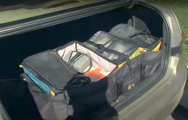 自驾出门前按清单整理出一大堆东西,不能就直接塞进后备箱,分类收纳才能方便取用。常见的后备箱收纳方式就是超市里能买到的透明塑料收纳箱,大小随意,还能承压,但是有个最大的问题是走颠簸路面时晃动的箱体硬质材料特别容易磨损后备箱车体衬板,这点在SUV车型上最易发生。其实,我们可以改用模块化的旅行装载包来进行收纳,它们通常会采用高耐磨度的尼龙外面料,加厚泡沫支撑结构,不会磨损后备箱衬板。包体支撑并可折叠,以不同颜色区分的模块化独立收纳内袋,顶部大开口装载,方便分门别类地安排物品。有了它,你的后备箱一定能变得井井有条。