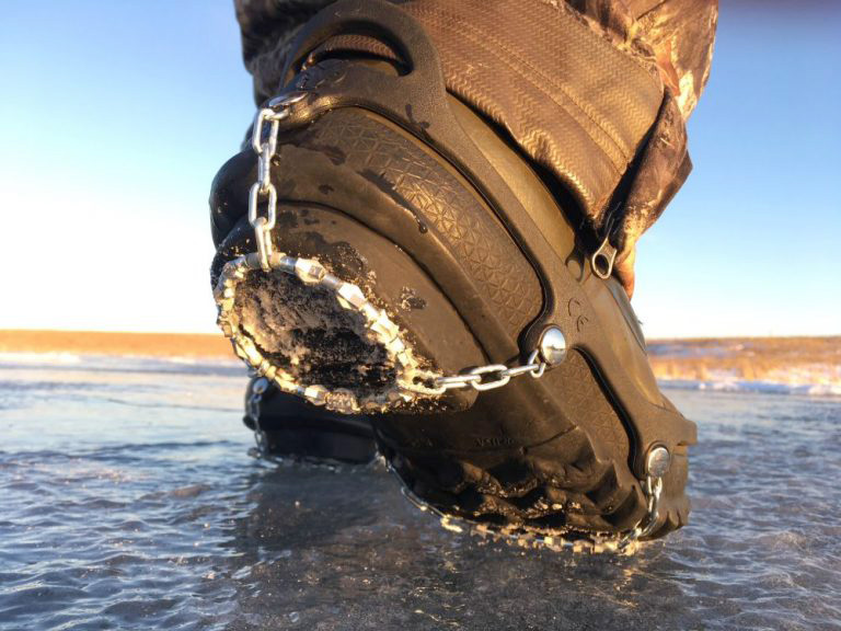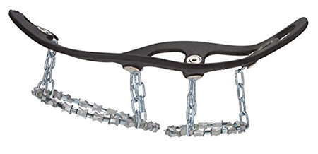 专利的钻石形串珠具有数百个尖锐边缘,利用人体重量插进坚硬冰面,在360°各个方向上都能抓握咬合,防滑性能出色。这些串珠由硬齿面合金钢制成,并采用航空级镀锌钢缆连接,坚固耐用。串珠可独立旋转,防止冰雪聚结在鞋底、冰爪上面。