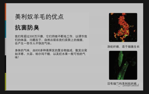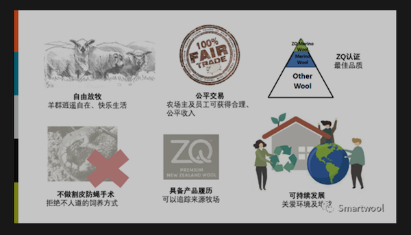 Smartwool所选用的羊毛,是美利奴羊毛中的最高标准ZQ标准的羊毛,结合现代科技与技术,让羊毛优异的温控管理、吸湿排汗、抑菌抗臭等先天优点,如有智慧般地去符合我们的需求,适应各式户外与都市环境。Smartwool 也被中国的用户们称为“智慧羊毛”或者“聪明羊毛”。
