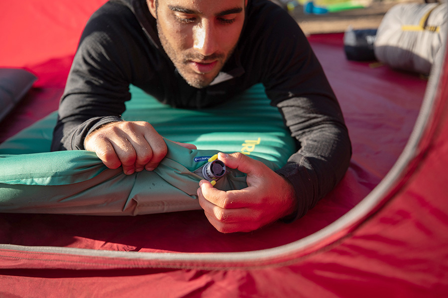 这种填满真空的过程就是我们所说的自膨胀。睡垫上的气阀为空气的进入或排出创造了单向通道,使你可以控制自充气的过程。