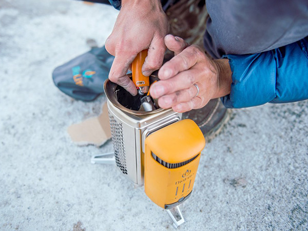 注意:如果在CampStove 2+中使用树枝,随着火势的增长,逐渐添加更粗的树枝。直径越粗,燃烧的时间越长