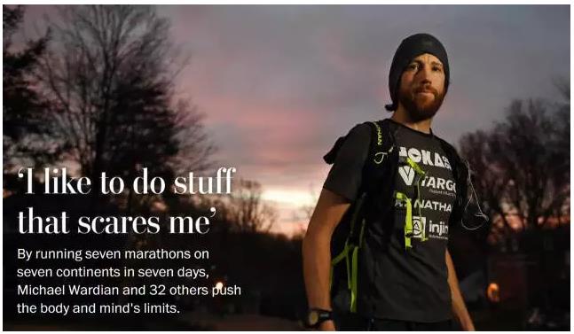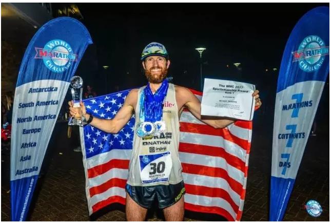 2017年1月29日,Michael Wardian,NATHAN赞助运动员,完成了世界马拉松挑战赛(World Marathon Challenge),同时创造了新的世界记录。 7天完成7大洲7场马拉松的平均完成时间:2小时45分钟。 每天一场全程马拉松,每天周转1个洲,每天数小时的飞行。在这样的高强度输出下,做到平均每个全程马拉松用时2小时45分,这绝对是史上最牛的背靠背。 Michael Wardian 是谁? Michael Wardian,NATHAN运动员,超马/马拉松跑者。Michael除了长长的领奖台站台列表之外,还有长长的世界纪录/赛事记录清单,因此,有一个外号叫做record-breaking marathoner and ultrarunner。