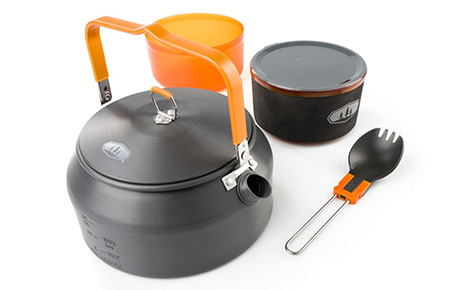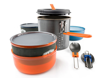 多年来,铝质炊具一直在户外锅具市场上占有最大的份额,就是我们常见的各种灰黑色的铝锅套装。美国露营炊具餐具品牌GSI Outdoors也生产多种铝质炊具套装,其中的Pinnacle Dualist II 双人炊具套装二代是终极的双人烹饪+饮食解决方案。套装产品重590克,每人分摊的重量才不到300克,就可满足在野外煮食、用餐、饮水、清洗所需的一切,效率高,易打包,专为高性能烹饪而设计。
