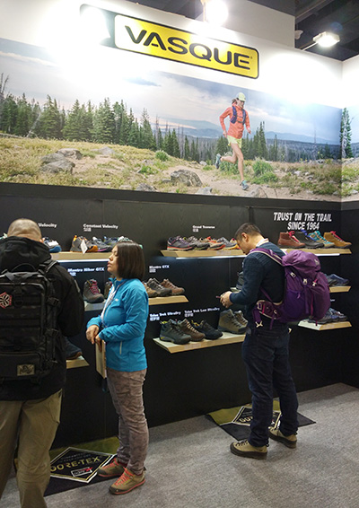 深圳喜马拉雅公司展位一直都是ISPO BEIJING展会上人气最旺的展位之一,美国专业户外鞋品牌Vasque和意大利经典户外鞋品牌Zamberlan都带来了最新的产品系列。