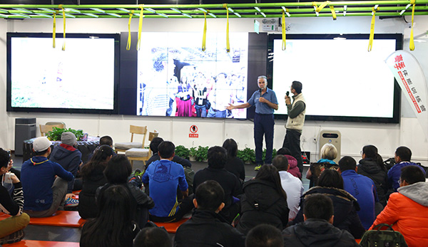 15日晚,深圳喜马拉雅公司在北京壹季体能训练营举办了Ultimate Direction品牌故事分享会,Buzz向来自全国的近百名跑友介绍了Ultimate Direction品牌的发展历史。Buzz本人就是一名越野跑运动员,曾获得Masters Trail 冠军,也是Colorado Trail的前FKT记录保持者。2012年Buzz加入Ultimate Direction,主持开发出畅销的运动员签名款,使这一品牌得以复兴,并成长为最重要的越野跑装备品牌之一。
