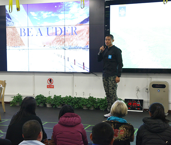本次分享会更像是一场UDer的聚会,风雪户外CEO老罗担任现场翻译,不时在翻译过程中“加料”;资深跑友老蒋分享了自己的UDer故事,以及使用Ultimate Direction装备参加越野跑的心得感悟;现场互动环节还有特别定制的Ultimate Direction手机壳、钥匙扣、跑步背心……