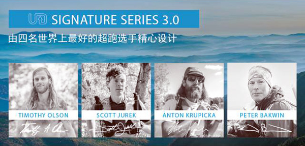在Ultimate Direction展位上,最新签名款3.0越野跑跑步背心吸引了观众的目光。2013年Ultimate Direction推出由三位著名越野跑者Scott Jurek、Anton Krupicka、Peter Bakwin联合设计的签名系列,如今,签名系列已经发展到了第三代,Timothy Olson的加入使签名系列的产品趋于完善。