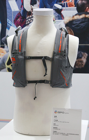 作为深圳喜马拉雅公司代理的另一个重要的跑步装备品牌Nathan在展位上展出了全系列产品,其中包括在刚刚结束的ISPO MUNICH展会上获得2017 ISPO AWARD大奖的Nathan VaporKra 4L超轻跑步背心。这款为快速竞技和长途奔跑而设计的产品,是人性化补水装备和极简主义相结合的缩影,切身合体又透气舒适。Nathan运动员、世界级超跑选手Rob Krar和Stephanie Howe与Nathan合作,共同实施的特别产品研发项目——让两位精英运动员参与到产品设计和研发当中,于是诞生了全新的VaporKrar和其对应的女性款VaporHowe产品系列。