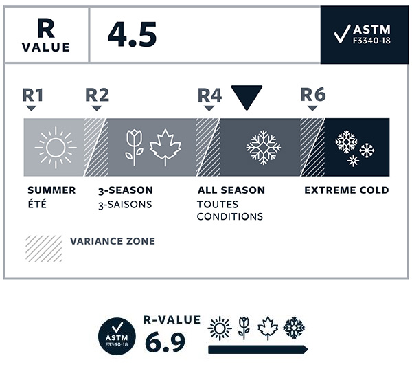 ASTM标准的R值将确保睡垫市场上产品具有可比性,这个数值为消费者选择一款能保证舒适和温暖的露营睡垫提供了最具指示性的评级——R值越高,材料或结构的保暖性能越高。