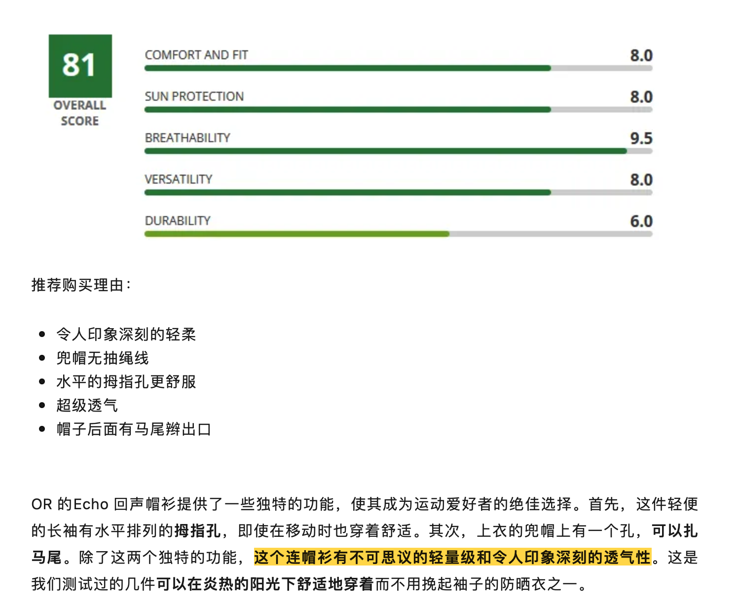 2024最适合高汗有氧运动的女士防晒衣:OR Echo Hoodie 回声帽衫透气性最佳!| GearLab测评