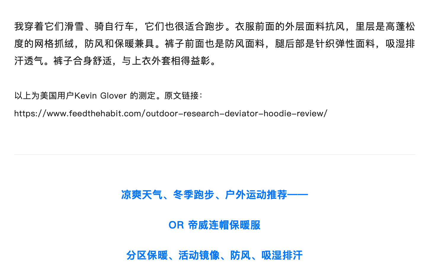 秋冬跑步超轻外套推荐——OR DEVIATOR HOODIE 帝威连帽保暖服