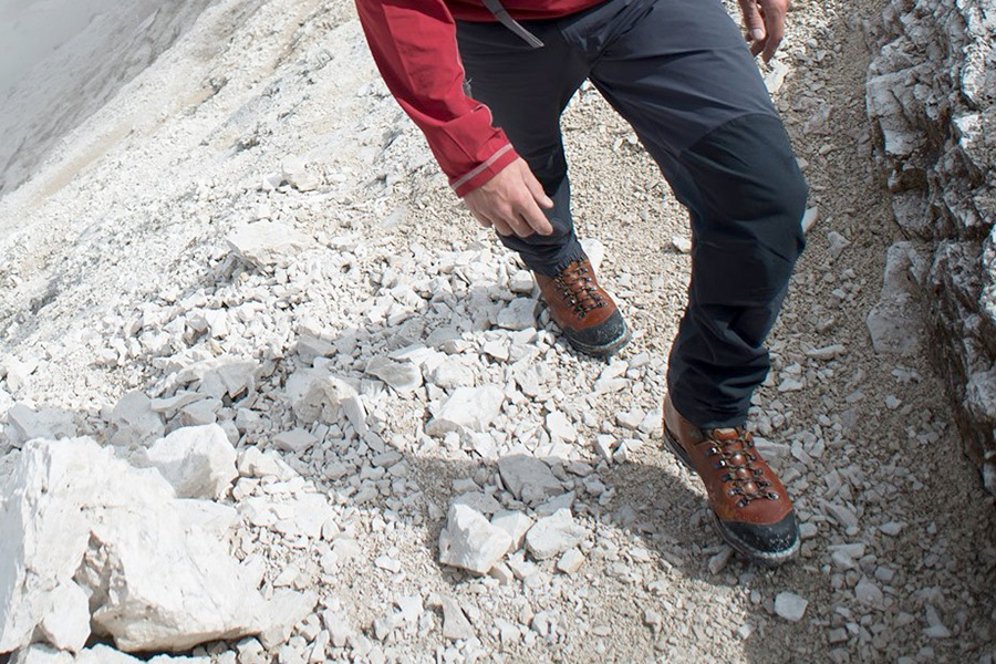 重装徒步靴通常指鞋帮高于脚踝,有更结实皮革的鞋面和更硬更强支撑性鞋底的户外鞋。重装徒步负重多在15公斤以上,需要在崎岖路面行军跋涉多日,所以选择重装徒步靴首先要看产品的支撑性和防护功能。