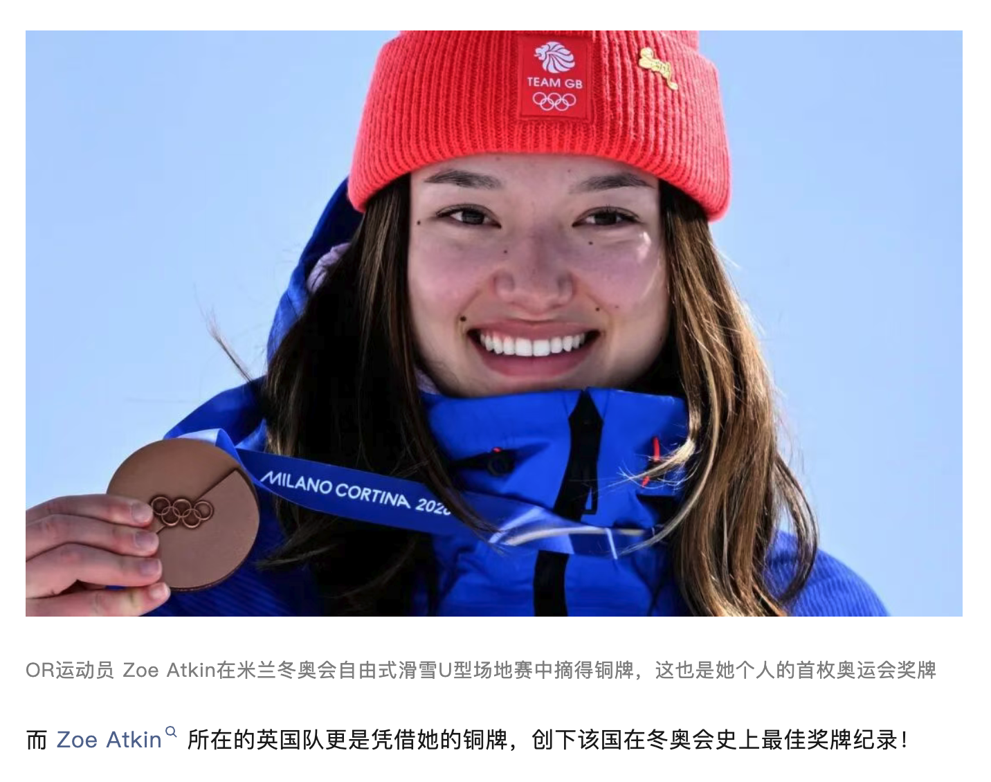 OR 运动员 Zoe Atkin 米兰冬奥会铜牌!恭喜她!
