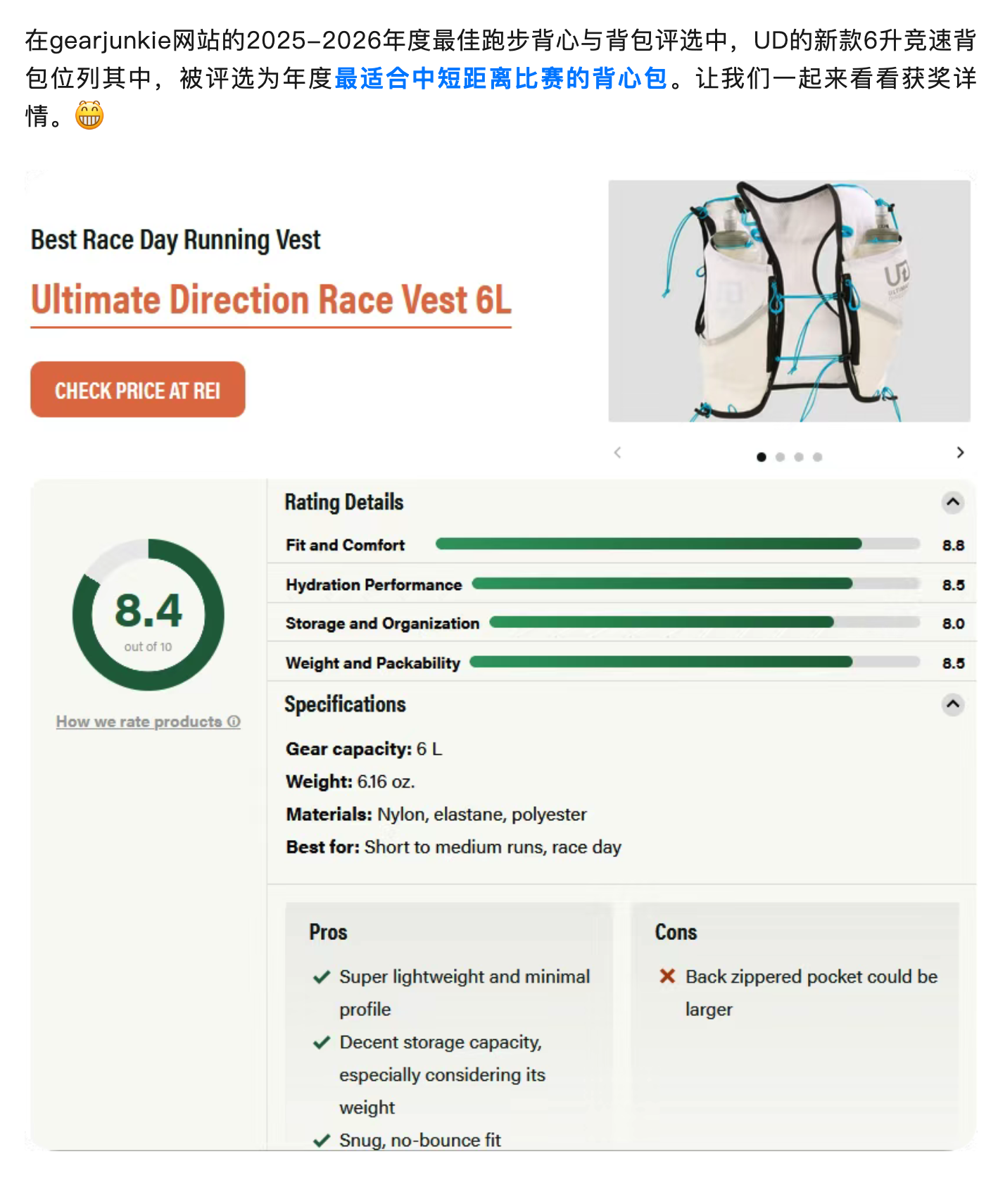 UD 6升竞速背心包 | 2025-2026年度最佳跑步背心与背包