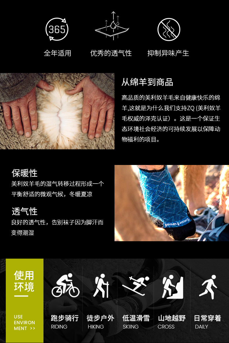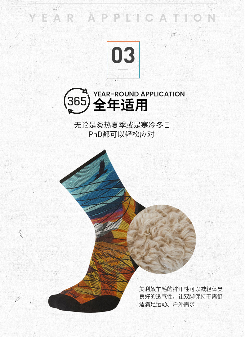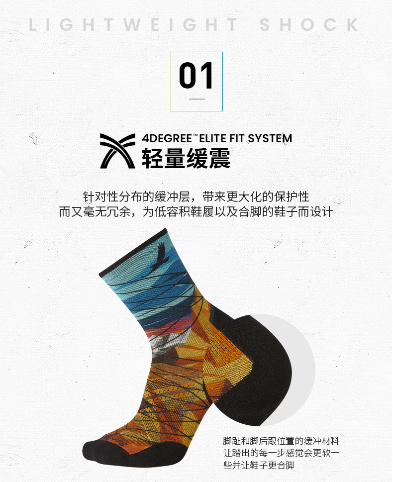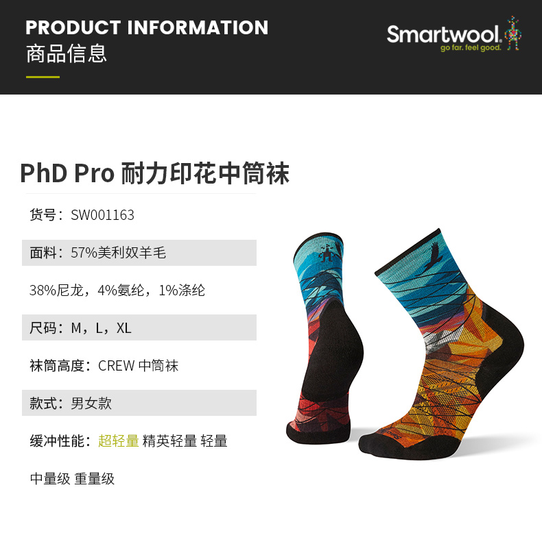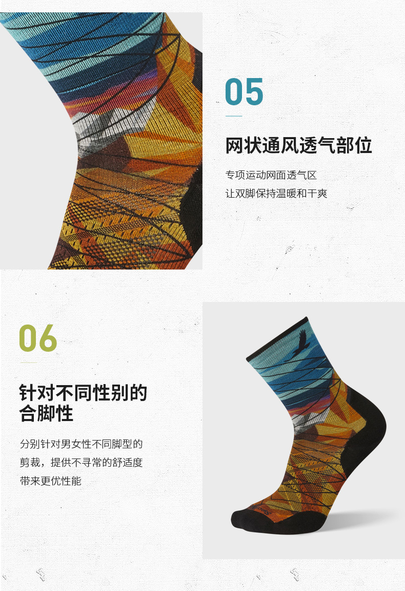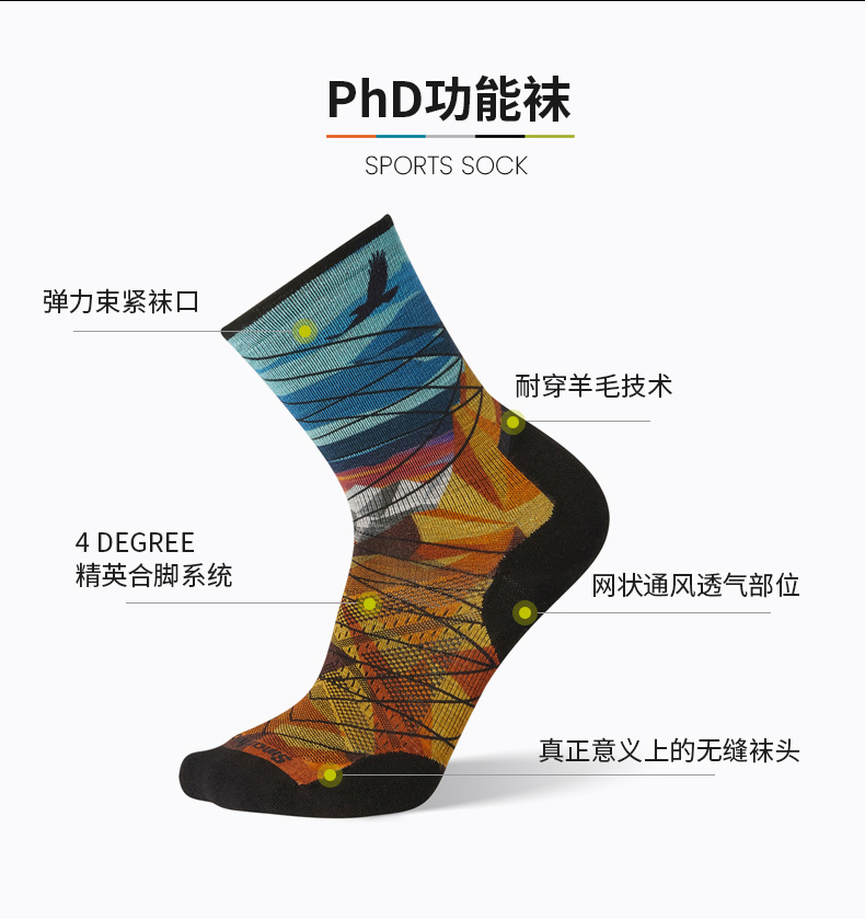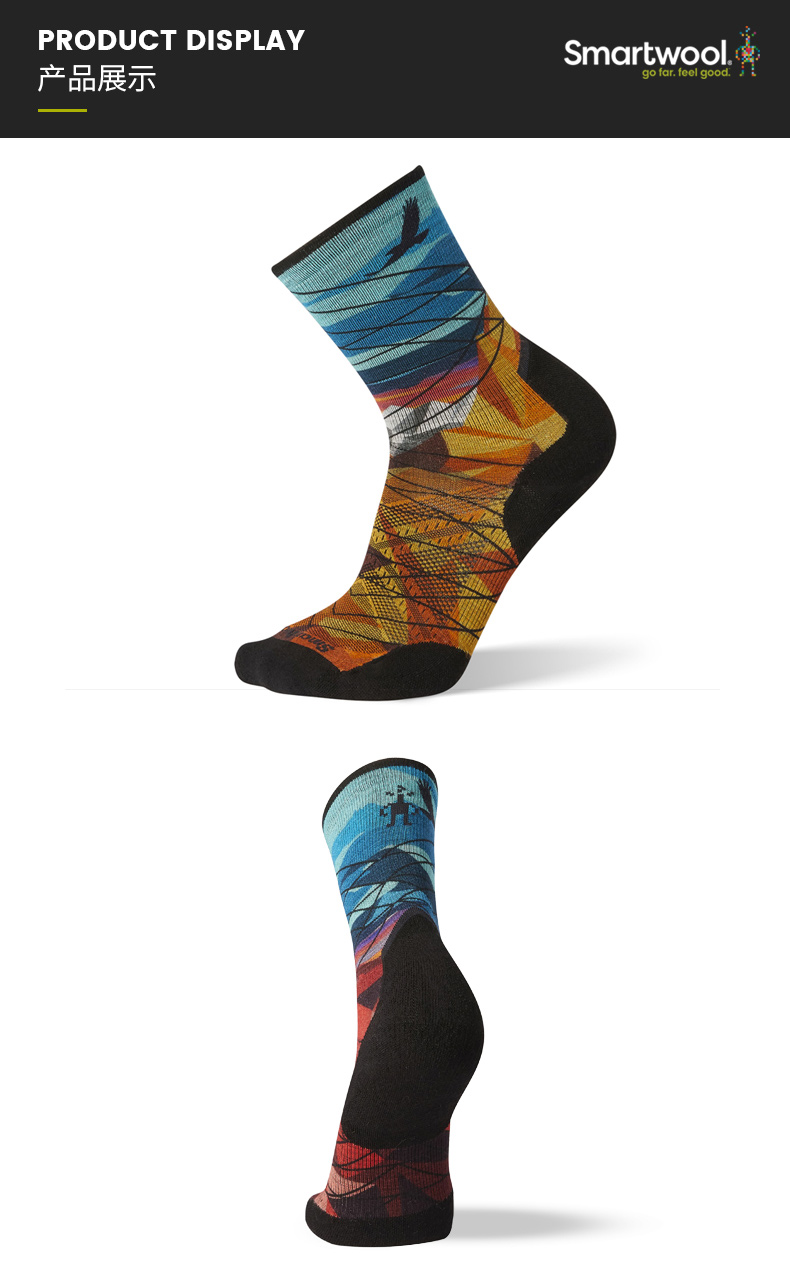 Smartwool 运动员联名款跑步功能 零减震乌鸦印花中筒袜羊毛袜1539