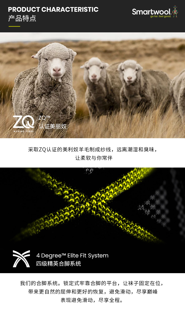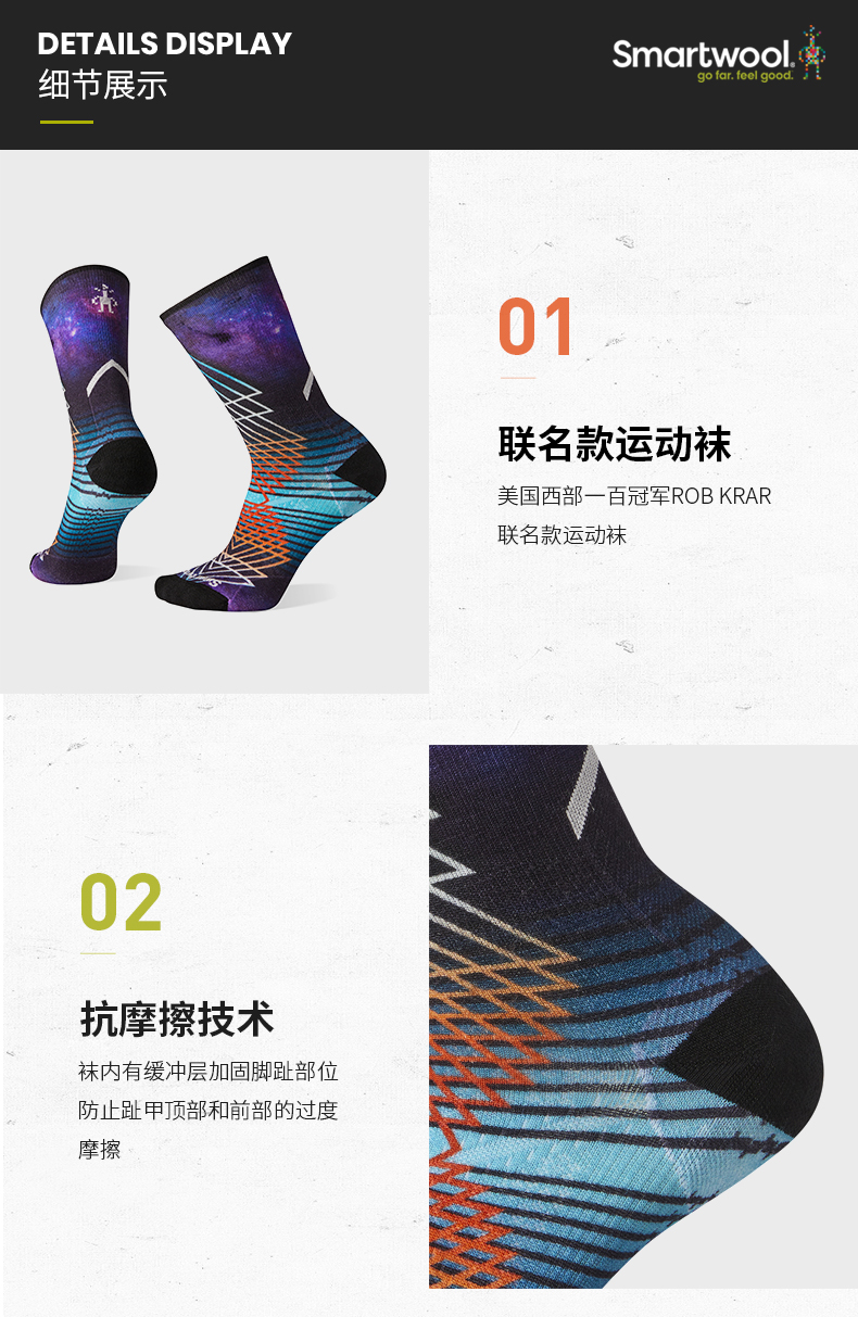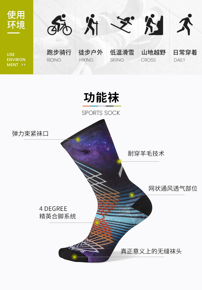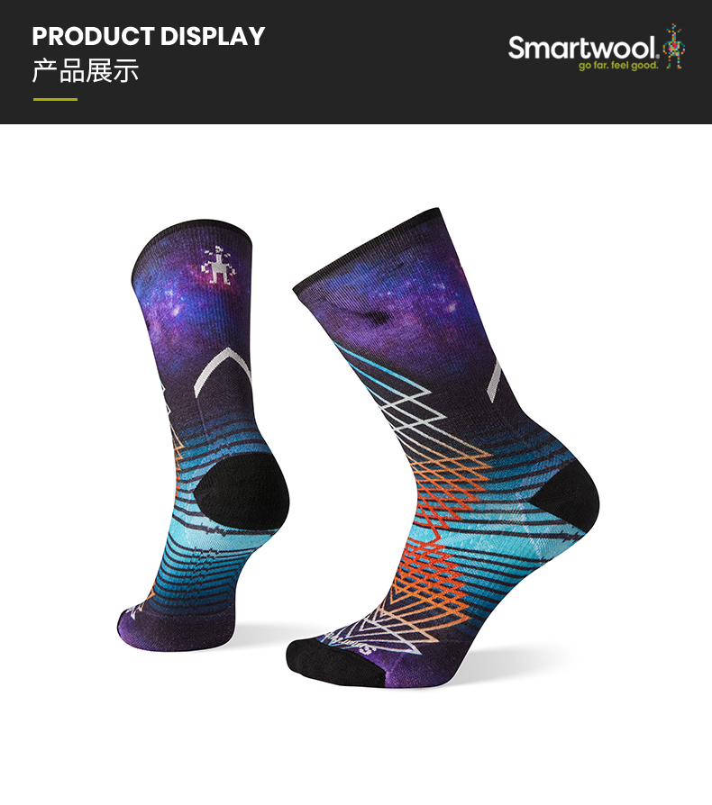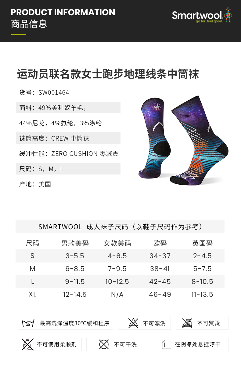 smartwool运动员联名款女士跑步地理线条中筒袜羊毛袜排湿袜1464