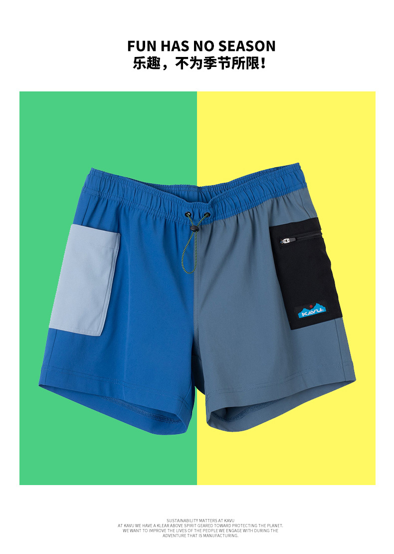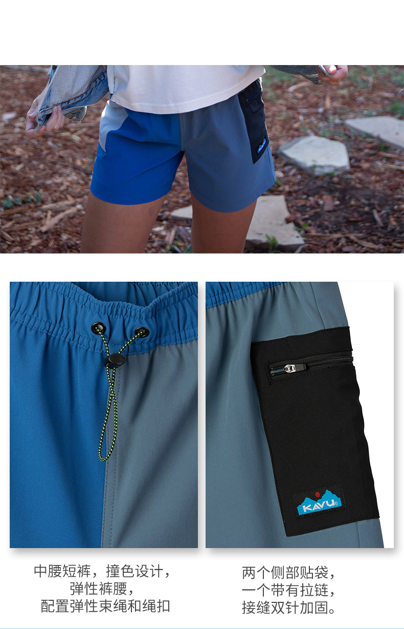 KAVU春夏季2022新款撞色中腰束绳户外休闲运动速干短裤女夏天6143