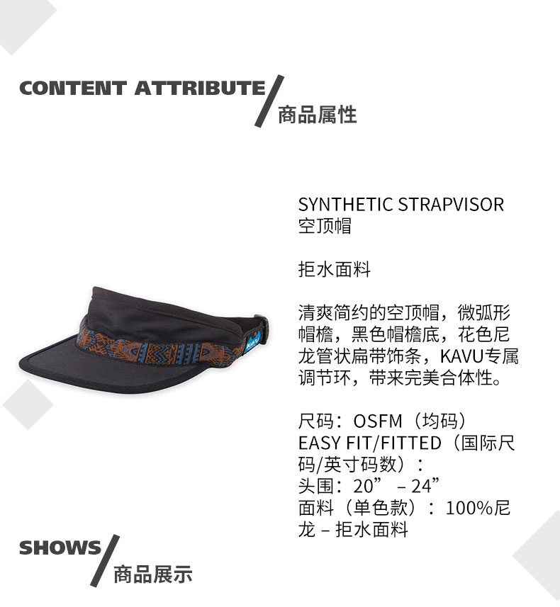KAVU男女通用款运动休闲遮阳帽空顶帽子 102