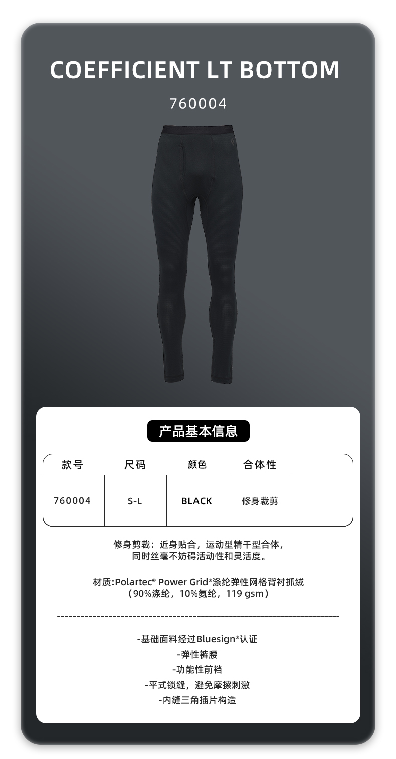 Black Diamond黑钻bd保暖打底裤羊毛保暖贴身保暖裤打底裤760004