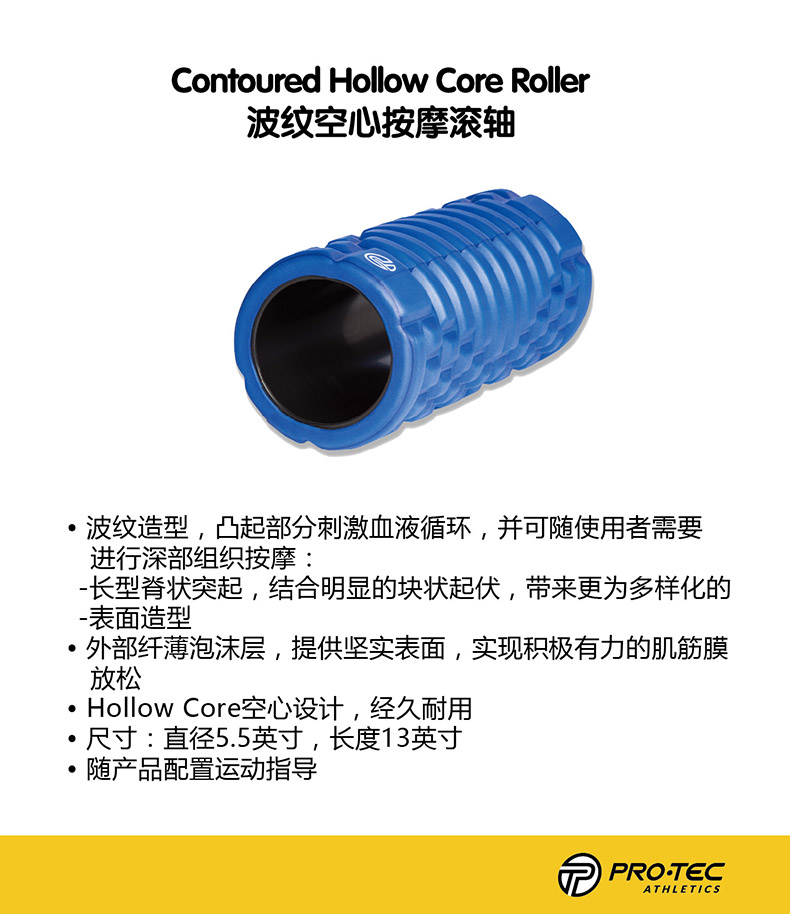 PRO-TEC Foam Roller-5.5" x 13" Contoured Hollow Core 5.5*13寸 波纹空心按摩滚轴