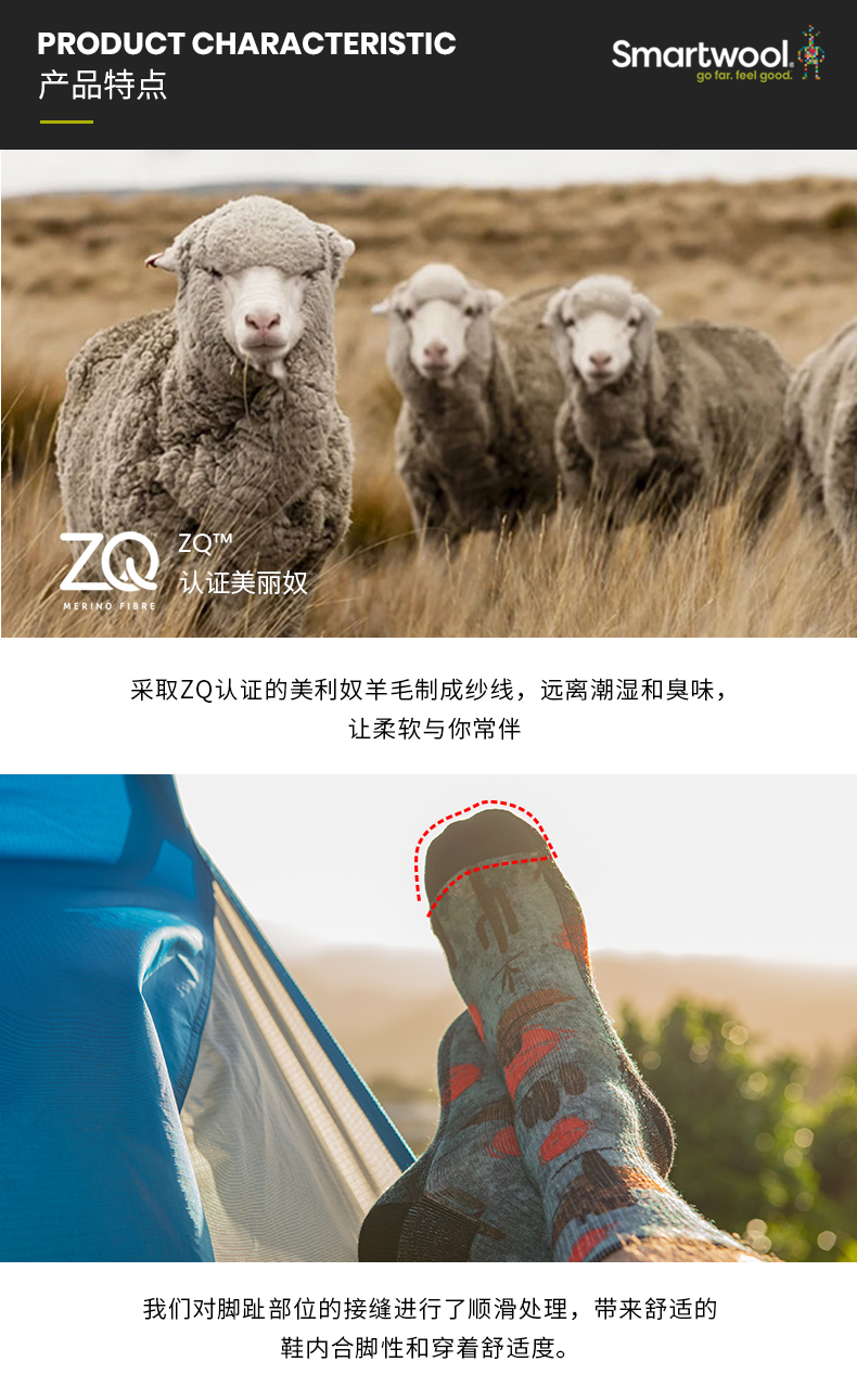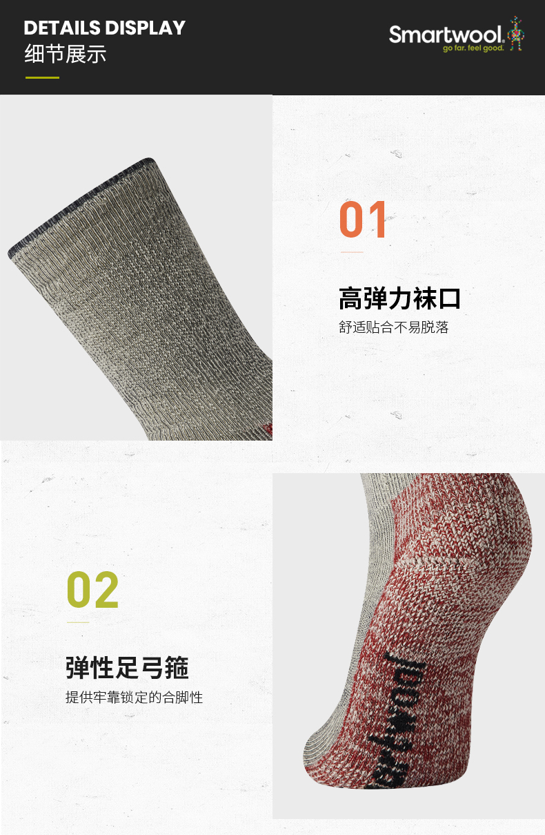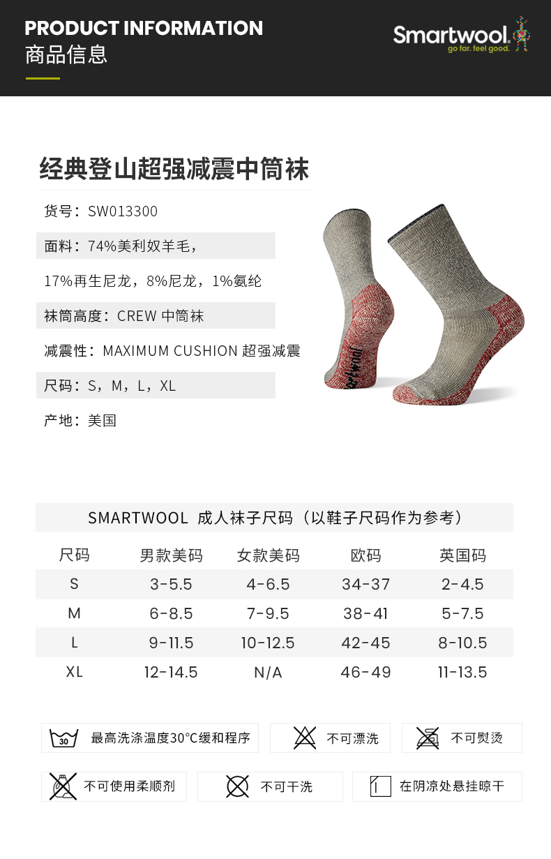 Smartwool 徒步超强减震经典中筒袜户外美利奴羊毛袜运动袜男3300
