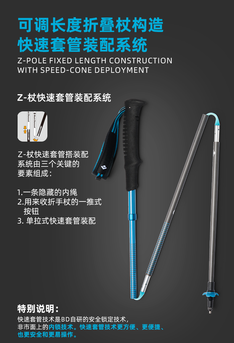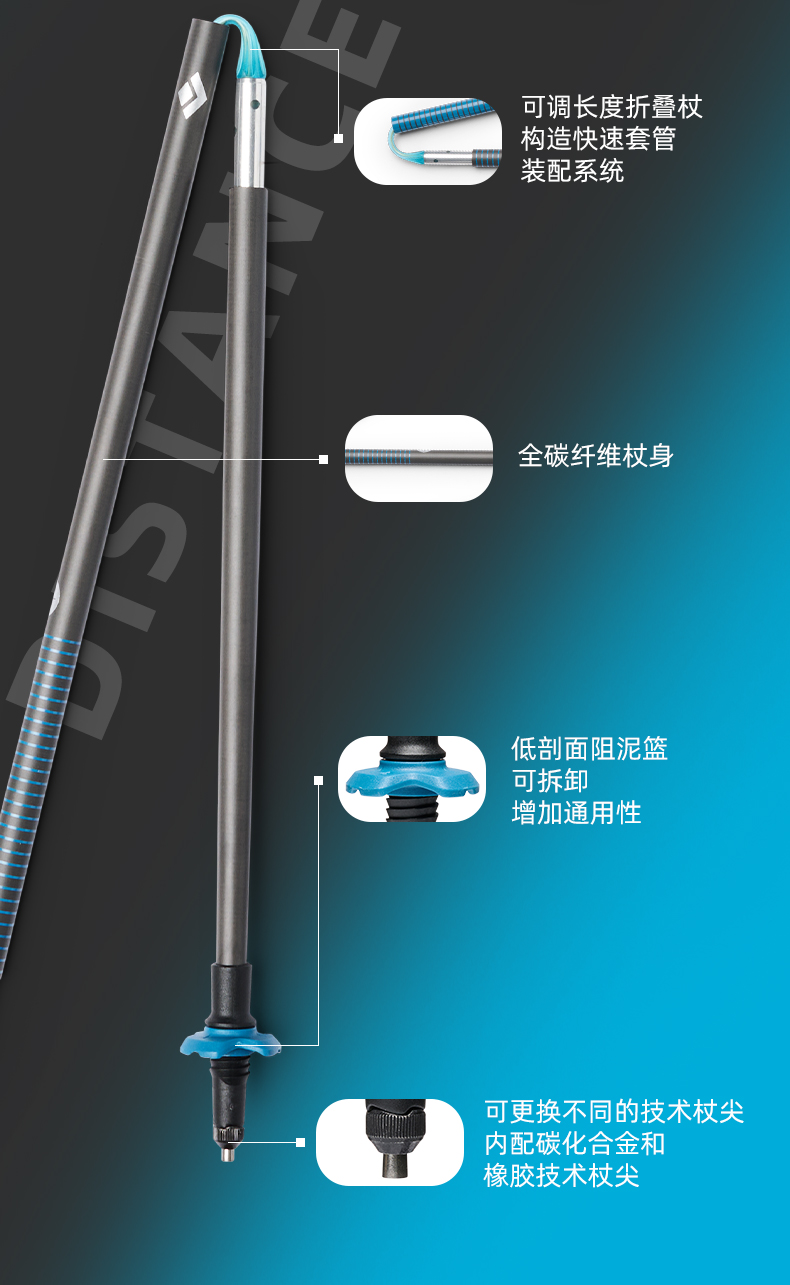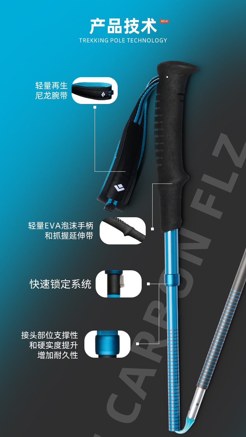 BlackDiamond黑钻登山杖碳素超轻折叠手杖登山徒步杖不可调112554