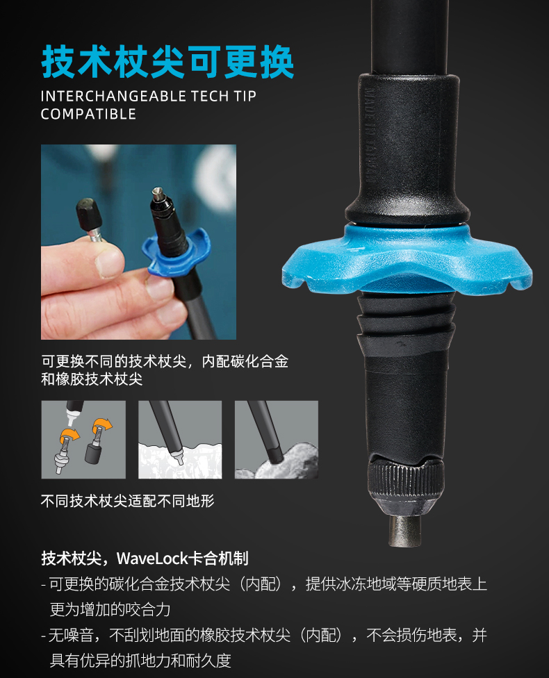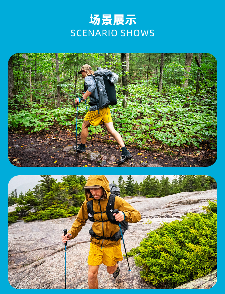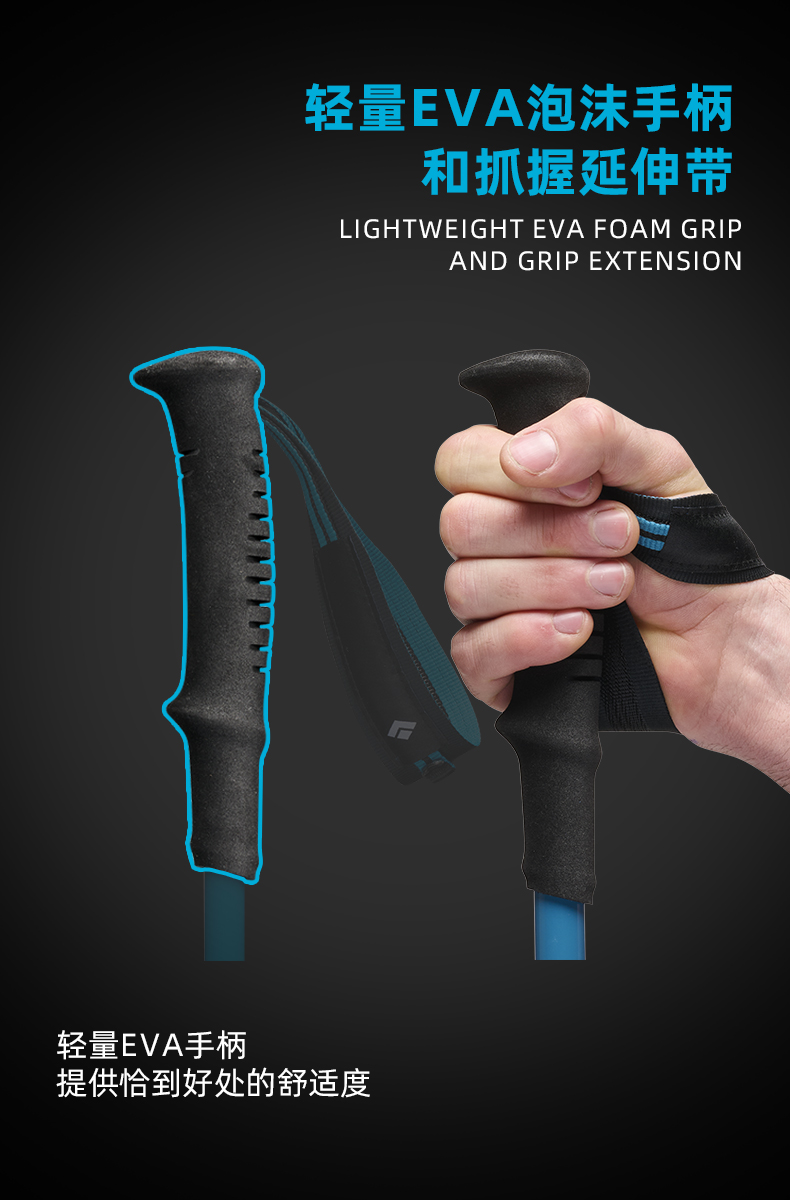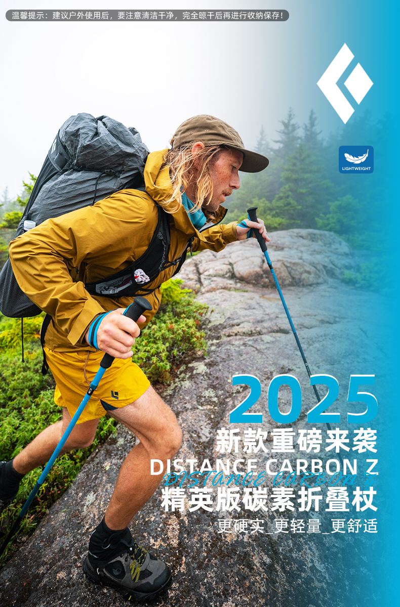 BlackDiamond黑钻登山杖碳素超轻折叠手杖登山徒步杖不可调112554