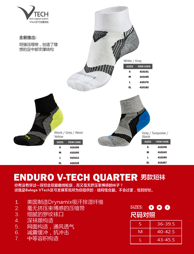 Balega倍佳 Enduro Vtech Quarter 中帮袜 8343